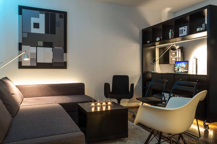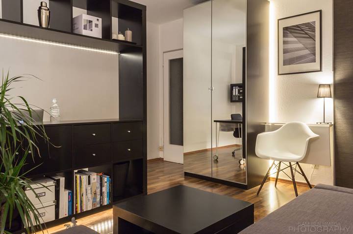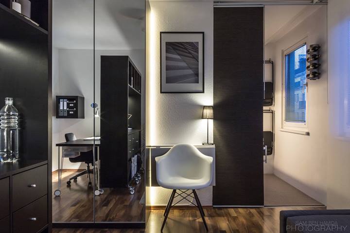 Я всегда жил в небольших помещениях. Учитывая мою страсть к созданию мебели на заказ и то, что я был студентом-архитектором Венского технологического университета, я всерьез заинтересовался тем, как сделать малые пространства более пригодными для жизни. Я проанализировал эту «24-метровую» квартиру, состоящую из 15 кв. м. жилой площади с прилегающей кухней и ванной комнатой, опираясь на мой опыт работы.