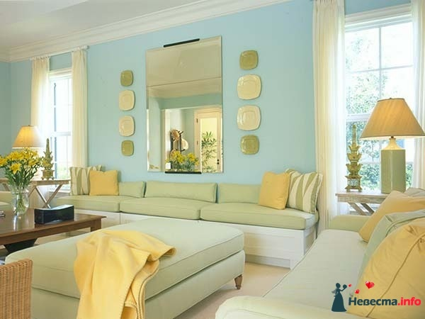 Итак, вы решили каждую комнату сделать в своей палитре. С чего начать? Если вы определились с цветом для каждой комнаты, стоит подумать о тонах-комплиментах (дополнительных). Очень часто комплиментами берутся нейтральные тона (бежевый, белый, айвори, серый), ведь это удобно, они со всем сочетаются. Однако это не значит, что и вы обязаны их выбрать. Даже если вы не дизайнер, вы можете подобрать тона, сочетающиеся с основными цветами комнат, но при этом контрастные к ним. Благо в Интернете есть много картинок по сочетаниям цветом. Не бойтесь экспериментировать! Светло-зеленый прекрасно сочетается со светло-лиловым, например. Светло-фиолетовый - с персиковым и т.д. Даже голубой с ярко-песочным цветом можно совместить, и получится очень эффектная комната. Как их сочетать? Что делать какого цвета? Например, обои на кухне вы делаете в одном цвете, тогда фартук должен быть такого же цвета, а вот фасады кухни - контрастного. Контрастного цвета можно сделать и шторы. Или же, например, обои в спальне одного цвета, а шкаф купе - контрастного. В тон к шкафу купе можно повесить картины, расставить аксессуары и т.д.