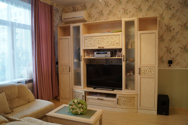 Цветовые решения - это моя заслуга, дизайнер нарисовала всю квартиру (низ) зеленым цветом, все остальное бежево-белым, не задумываясь о том, что можно комбинировать и непохожие цвета.