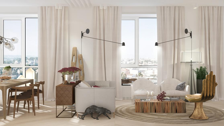 Неповторимая атмосфера тепла и покоя, которую создала автор проекта Полина Казакова (Polina Kazakova) в сотрудничестве с «Art Studio Design & Construction», достигается с помощью правильно подобранных отделочных материалов с разнообразными фактурами (штукатурка, плитка, , стекло), , а также замысловатой мебели и дизайнерских аксессуаров. Пожалуй, именно детали на этом нейтральном фоне делают интерьер таким интересным и запоминающимся. Они являются теми нужными маленькими штрихами, без которых интерьер не сложился бы в единое целое.