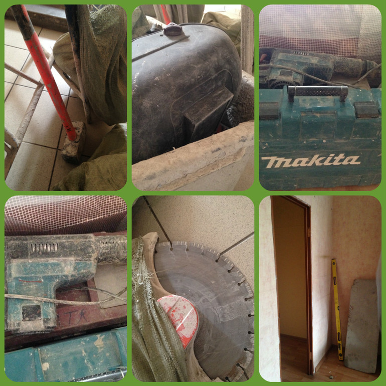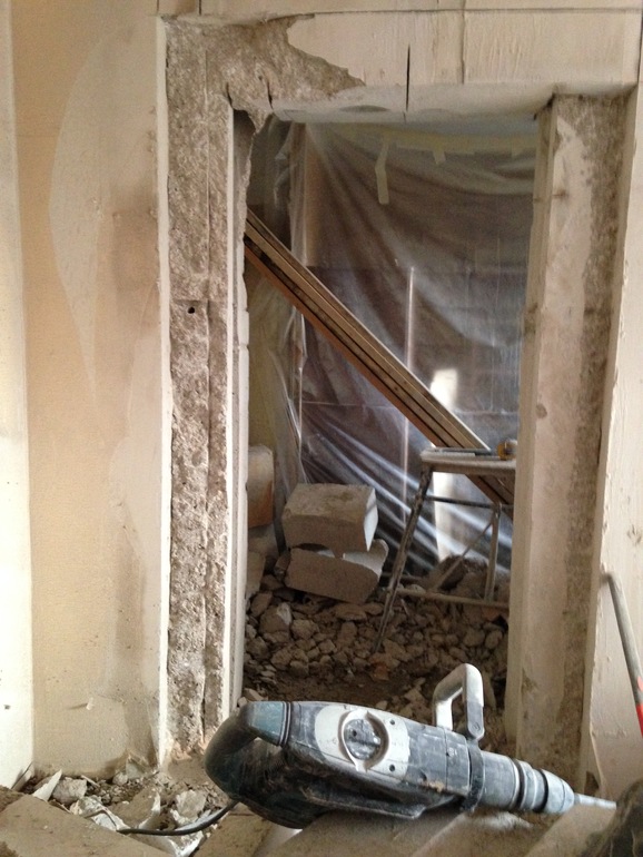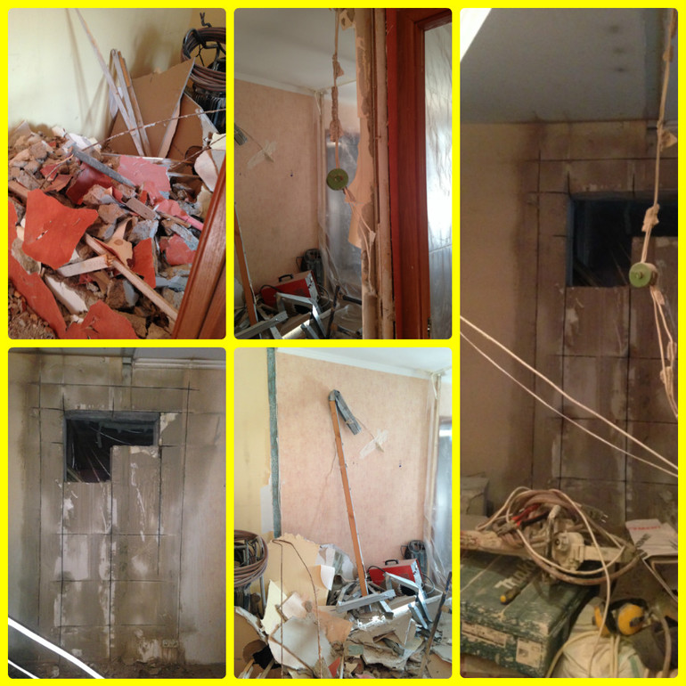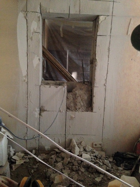 РазноеНачали ломать кусок несущей стены, чтобы сделать дверной проем в новом месте. Несущая стена шириной 53! см... Работы на три дня.