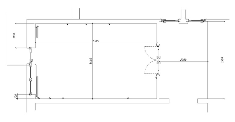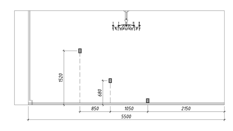 Исходные данные: комната 19 м2. Длина 5,5 м, ширина 3,4 м. Оконный блок с балконной дверью, 2 распашные двери в комнату. Высота потолков: 2.75.