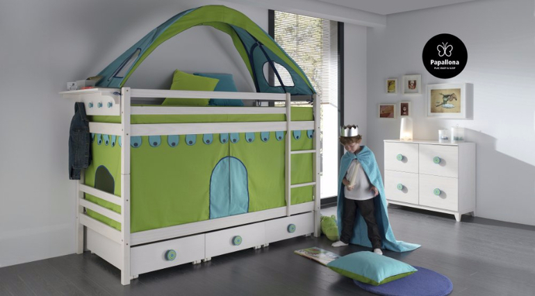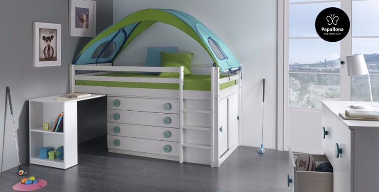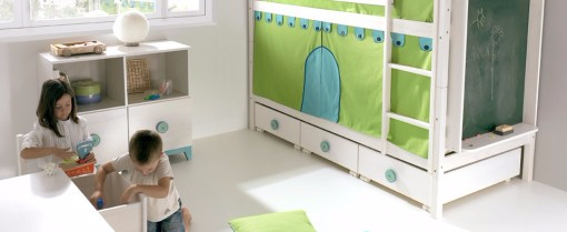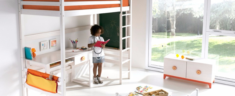 Нужно: две кровати-чердак для девочки и мальчика. Размер спального места 80 на 160 см.