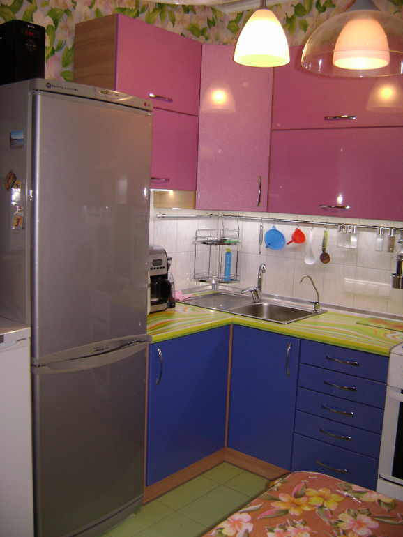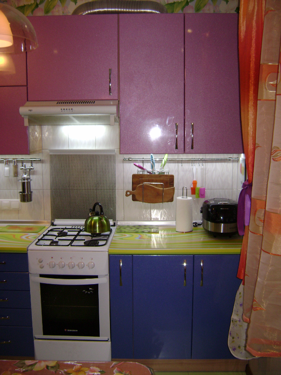 Нестандартная кухня в цвете. Мы с мужем очень любим яркие вещи и интерьеры. Поэтому кухню сделали яркой.