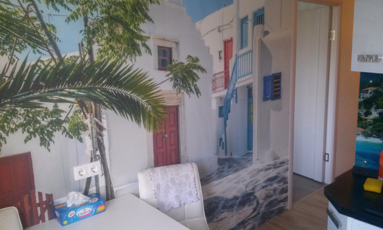 это не фотообои, а настоящая фреска... на ощупь как оштукатуренная стена с нанесением рисунка