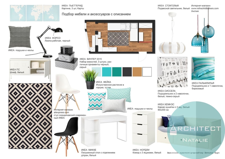 В чем преимущества такого вида проектирования? • экономия Ваших бюджетных средств; • простой, вдохновляющий и доступный подход к дизайну интерьера через электронную почту; • четкое понимание того, как реальные объекты будут сочетаться в интерьере, посредством составления коллажа.
