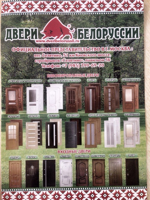 С полным ассортиментом товара вы можете ознакомится на сайтеhttp://dveribelorussii.ru/catalog/main.php