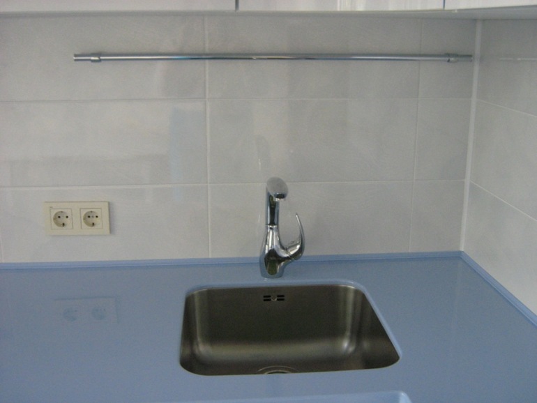 Еще могу добавить про смесители. Вы хотите выбрать смеситель с одной рукояткой, как и у нас? Когда сантехник устанавливал смеситель, он спросил с какой стороны нам будет удобнее сделать включение воды, этот вентиль. И мы сказали справа, ведь мы правши. Он так и сделал, как мы ему сказали (это видно по фото). Но теперь нам очень неудобно. Потому что обычно именно в правой руке несешь что-нибудь к раковине, а воду тянешься включать ЛЕВОЙ рукой!