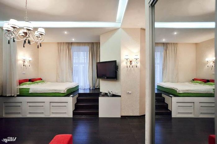 2. Сделать подиум с ящиком - кроватью. см фото. А на самом подиуме организовать детский уголок , к примеру