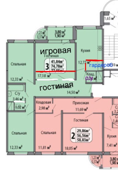 Так как коридор будет гостинной и отделятся она от прихожей будет большой аркой, то было решено в прихожей поставить банкетку с большим зеркалом и шкафчик узкий. А гардероб для обуви и верхней одежды сделать отдельно, построив доп помещение. В семье трое детей и без отдельной игровой не обойтись ( сейчас живем во временной трешке, места для игрушек не хватает и они повсюду), кладовку сделать под туалет, а ванную и с/у соединить чтобы места было больше). И вроде бы все ничего, но гардеробная получается 100 на 190, причем дверь ставить по метровой стене, ума не приложу что можно скреативить, переиграть. Но без игровой точно никак, и ванную хочется просторную. Не представляю как в такую гардеробную проходить, шириной в метр. в прихожей поставить шкаф не получится, там глубина стены 35 см, поэтому банкетка и пенал