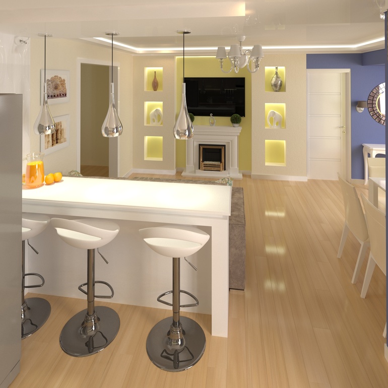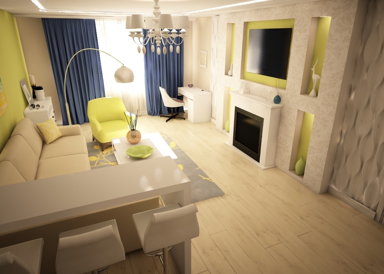 Как будет выглядеть помещение с разным напольным покрытием, цветом стен, текстилем?
