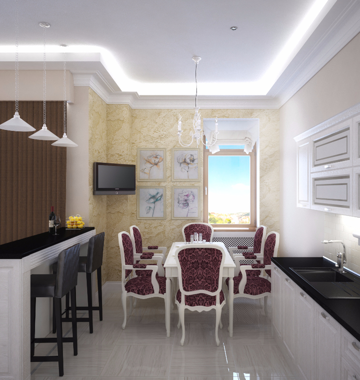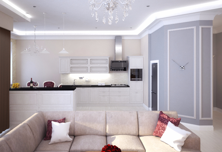 3.кухонный гарнитур отрезан из изображения экономии(кухня сделана из беленного дуба) да и кухня более 5 метров длинной это перебор,полки будут мешать так как там обеденный стол и стулья.