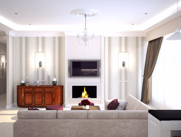 1.комод второй для симметрии не влезет ,так как там батарея мешает,нужно менять ширину короба делать меньше убирать биокамин и тел. тоже другого размера,поэтому так .