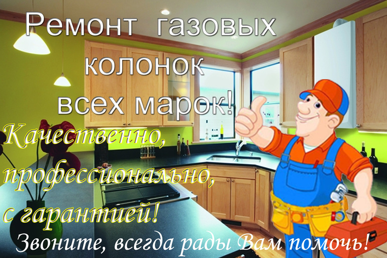 Если не работает газовая колонка любой марки, обращайтесь к нам за помощью. Профессиональный, качественный ремонт газовых колонок на дому, в удобное для Вас время. Все виды работ: устранение протечек, пайка теплообменника, замена неисправных деталей, тех обслуживание колонки, чистка, замена газовой колонки (доставка новой - бесплатно, в случае заказанной у нас установки колонки). На все работы - гарантия. Обращайтесь по тел. 922-02-40, с 09:00 до 22:00