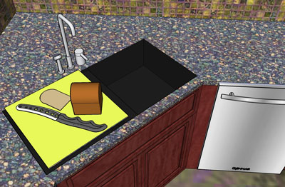 - используйте раковину как разделочную поверхность, предусмотрев покупку разделочной доски, соответствующей по размерам раковине и легко располагающуюся поверх неё;