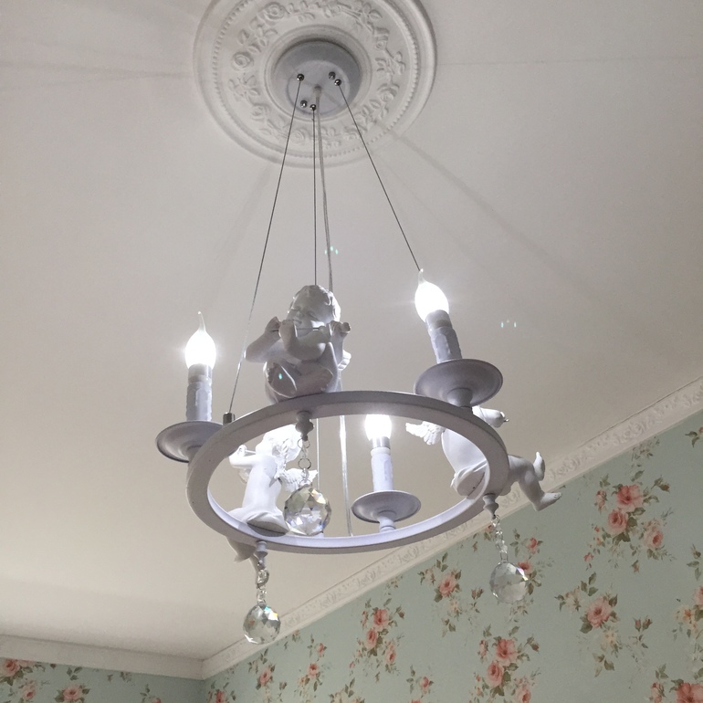 Дизайнерские люстры херувимы , 2 шт на 3светодиодные лампочки , привезли на заказ в детскую .Смотрятся супер , но не рассчитала с площадью освещения ,буду перезаказывать на 6 ламп . Отлично подойдут для спальни или небольшой детской . Цена за 2 шт 16.000 за одну 10000.