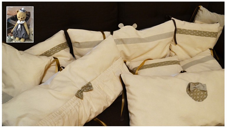 *бортики всегда могут стать просто подушками с затейливыми бантиками и использоваться ребенком самостоятельно в игре, в манеже, на полу итд.