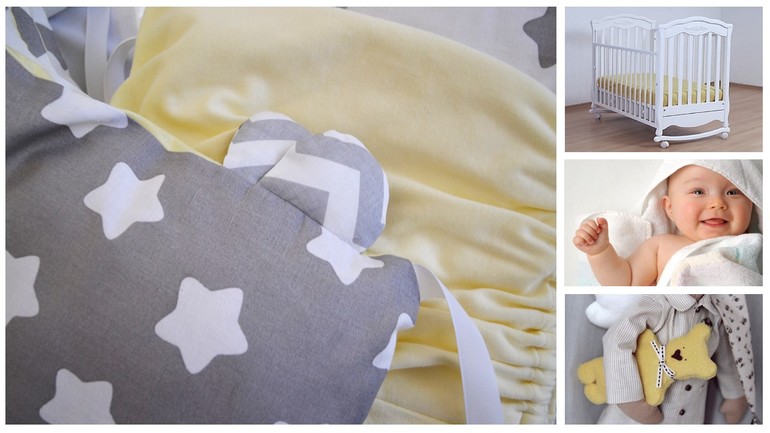 ТекстильПлюсы использования бортиков в кроватку для новорожденного можно перечислять долго: создание внутри кроватки комфорта и мягких уютных стенок, защита ребенка от застревания между планками кроватки и ударов о деревянные стенки кроватки при переворачивании, защита от сквозняков, прямых солнечных лучей, бликов компьютера или телевизора, визуальнo-эстетическое удовольствие в конце концов!