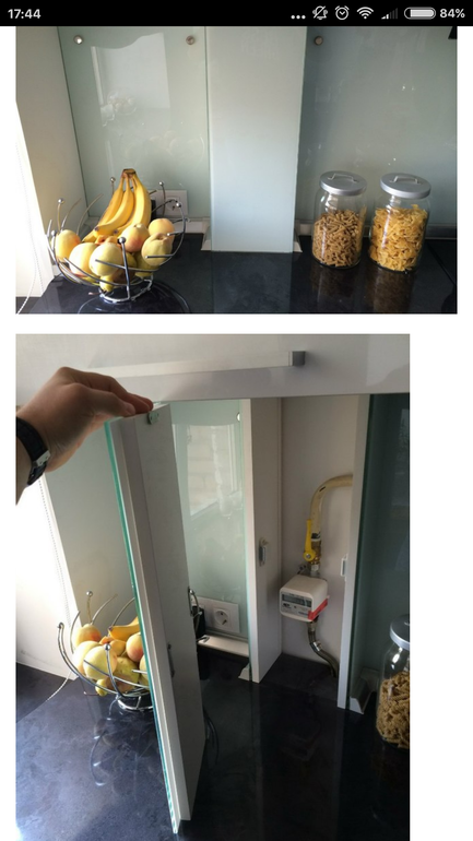 Я такую трубу убрала в нижнюю полку, без стенки, для доступа. Но я делала проект в газовой службе по переносу.