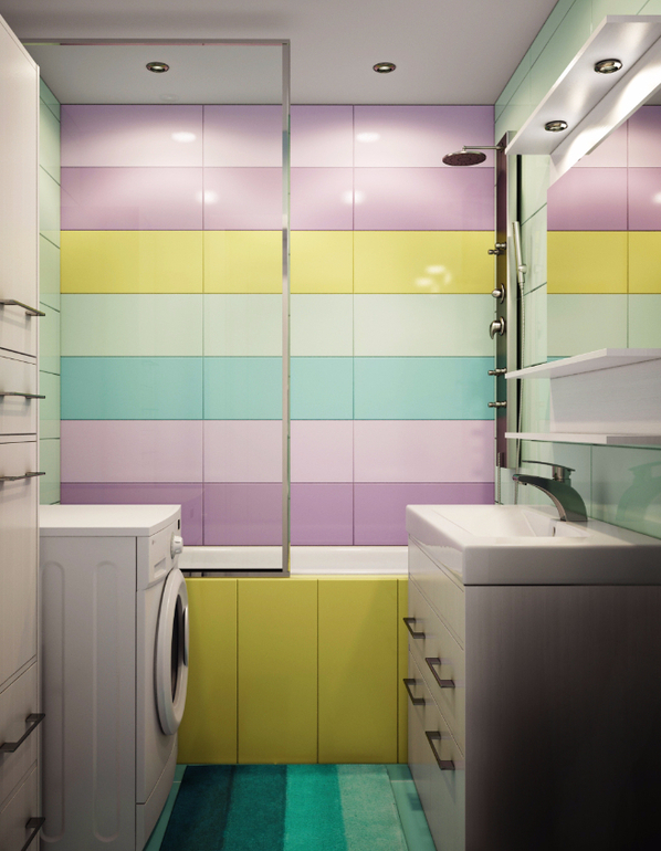 Или вас встречает мягкий рассеянный свет, такой теплый рассвет. Он не напрягает, а позволяет постепенно проснуться, окутывает своей воздушностью, дарит ощущение легкости… День ведь начинается с чистого листа, не так ли? Выбирайте светлые пастельные тона, это может быть и глянец и матовая плитка.