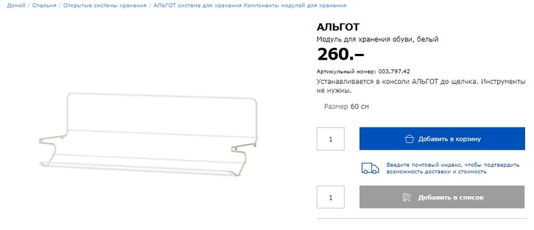Только шины уже докупать не нужно будет, только консоли и необходимые элементы: модули для обуви, полки, рейки для корзинок, штанги и т.д.