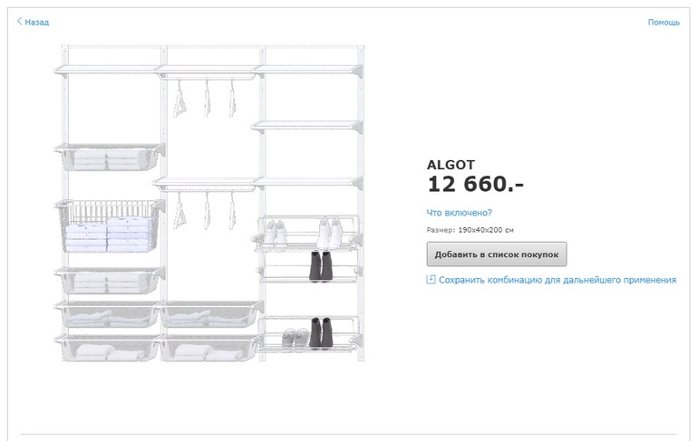 Сережка установил мне лимит в 20 000 чтобы наполнить гардероб полками)). Я восприняла это в шутку)), т.к. видела готовые открытые системы по совсем другим ценам. А потом нашла в ИКЕЕ серию Альгот.