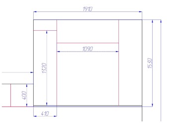 При разчетах, нужно добавлять по 3 см по краям конструкции, которые занимают консоль и вертикальная шина.