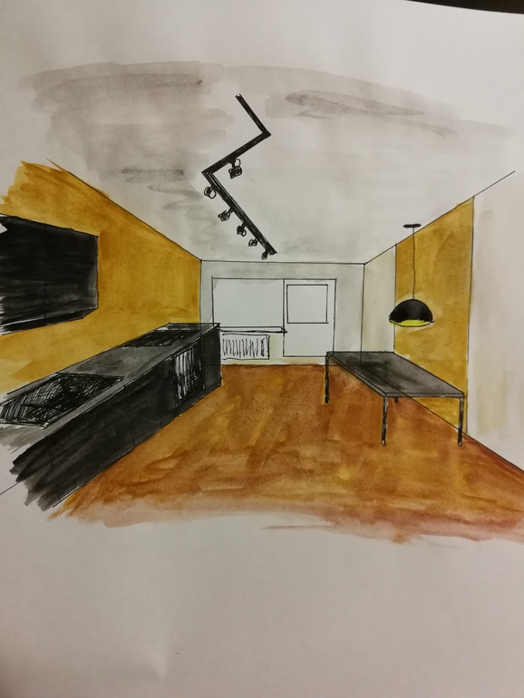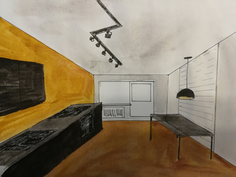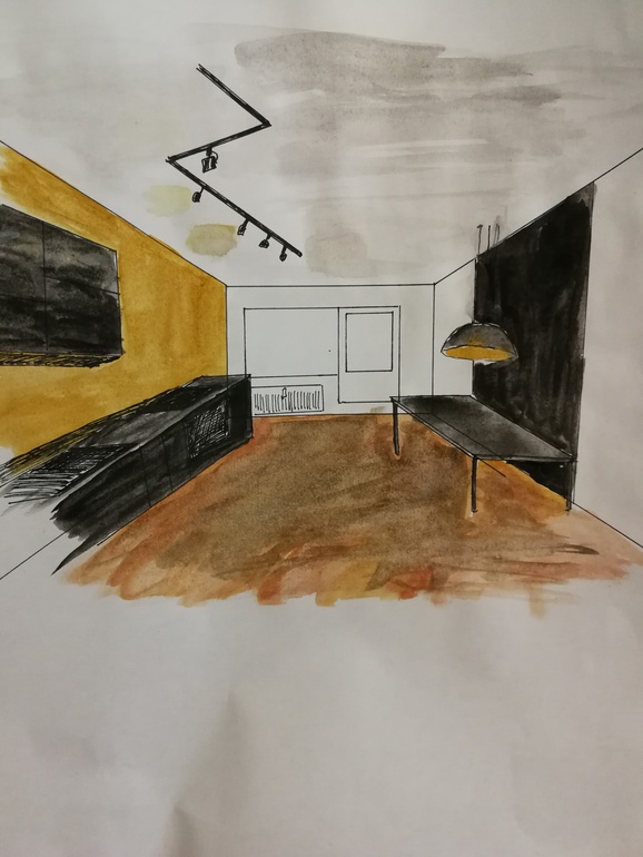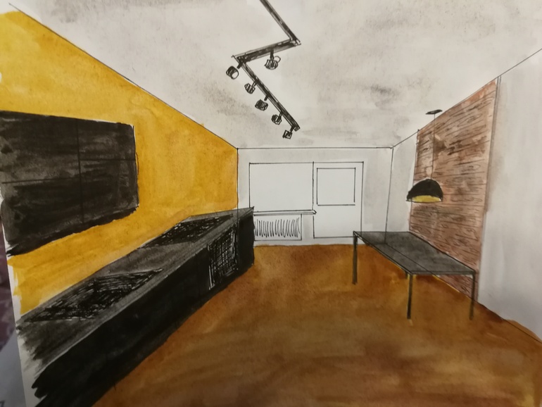 Дизайнерские решенияЯ не профессионал в рисовании, но для визуализации решила нарисовать кухню. Вопрос в том, какой вариант отделки стены у кухонного стола лучше? Просто стена, чёрный ламинат, пробка, как на противоположной стене, ламинат под дерево или белый глянцевый ламинат?