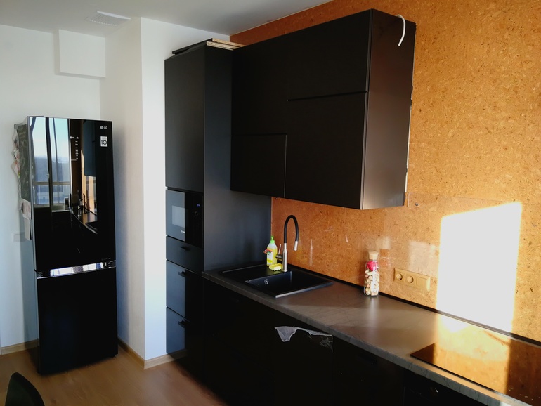 З.ы. многие говорили,что черная кухня- непрактично,но пока особых сложностей в уборке нет. + Кое-что ещё,конечно,не доделано.