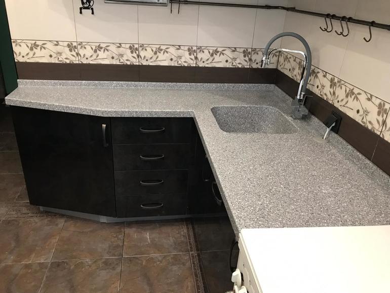 Хорошо получилось! Действительно все продумано. Я бы шланг просто белым пластиковым коробом закрыла. Будет аккуратно. Его просто на двусторонний скотч прилепить и всё. И микроволновка просит свою полочку. А то так место много занимает на столе. В целом все очень хорошо подобрали!