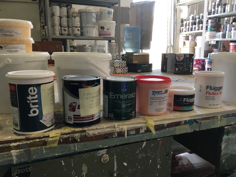 Но у дизайнеров к этим материалам свой, дополнительный "счет" - ее невозможно заколеровать даже по их вееру с предсказуемым результатом, и да же не потому, что продавец криворукий или плохо настроена колеровочная машина, а потому, что их вееры печатают полиграфическим способом, и его нельзя подогнать под результат, сколько бы мы ни старались. И четвертая претензия, думаю, ее разделят все пользователи - у этих производителей нет маленьких объемов для пробного выкраса. Вы покупаете огромные ведра по 900-1000 гр, чтобы использовать из них 20 гр для выбора цвета на объекте. И при всей ценовой политике, которая кажется привлекательной, на круг набегает. И что делать с не подошедшей краской? До пенсии продавать ее на Авито?