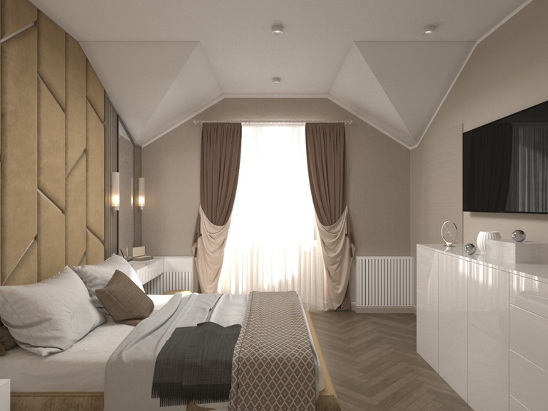 В моей спальне в силу особенностей конструкции крыши и соответственно потолка батареи радиатора никогда не попадали под занавески и всегда оставались на виду, из-за чего были упакованы в более-менее симпатичные короба и меня не раздражали. В дизайн-проекте к планирующемуся ремонту история подобная, только короба более современные: