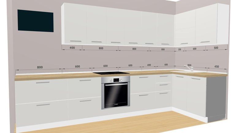 На ремонт кухни не могу решиться года 2. Но кухню очень хочется) Сейчас у нас оборудован только угол и стоит электроплита. От этого расположения я и отталкивалась при планировании кухни, мне удобно сейчас. Проблема была в расположении телевизора и холодильника.