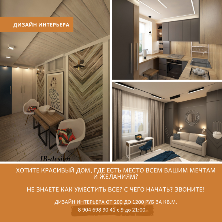 Предлагаю услугиДом - это место, которое должно помогать расти, дарить чувство защищенности, расслабления. Поэтому я считаю, что залог удачного интерьера - это большой анализ, внимание к деталям, к потребностям заказчика.