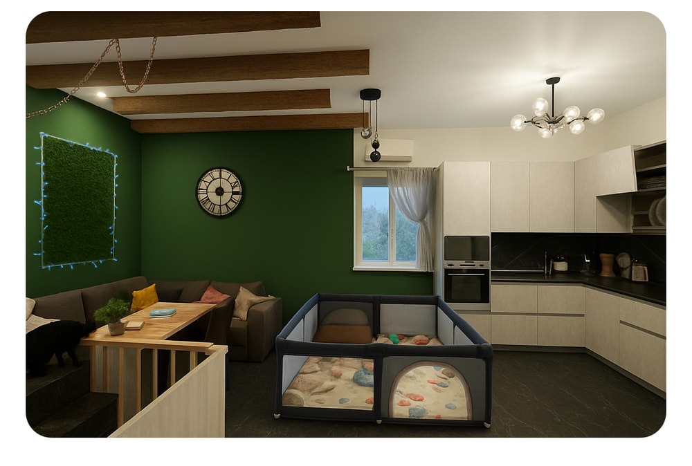 Лекса @_SS_industry, а если на ту стену где часы и далее над кухней тоже зеленый но значительно светлее