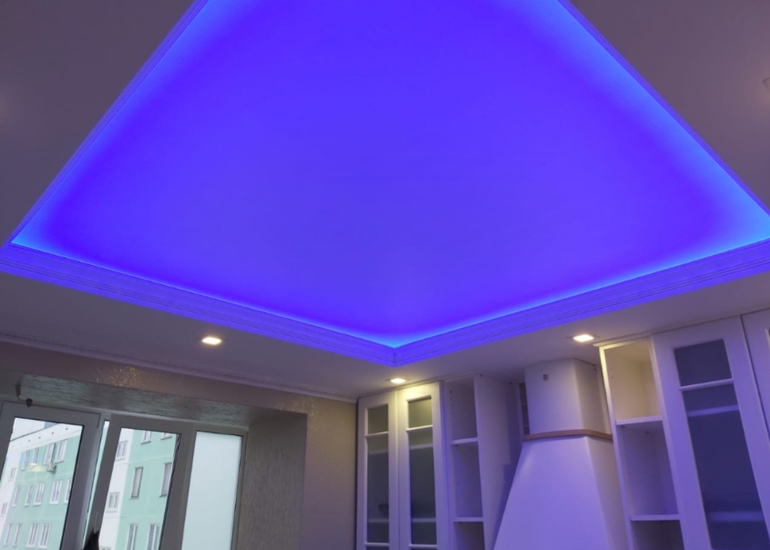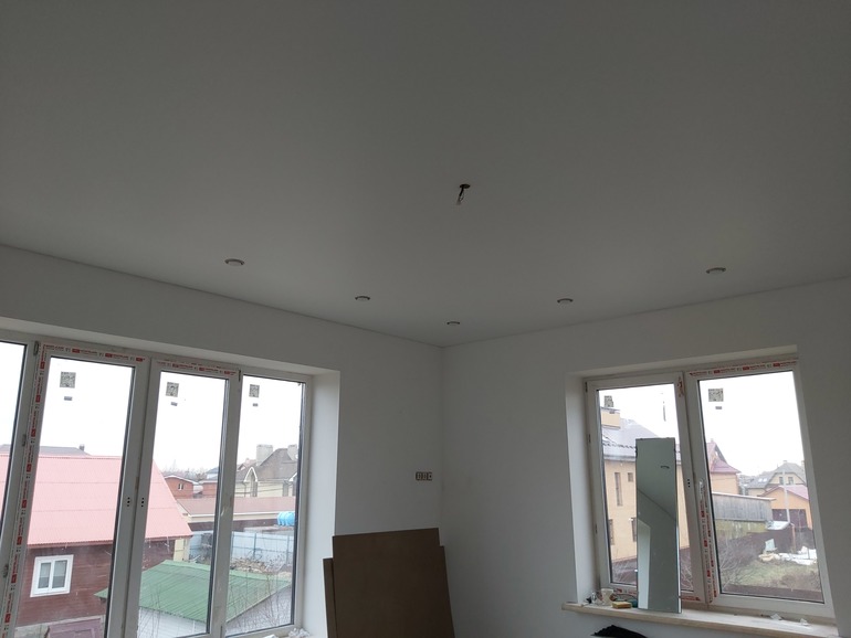 нужно тканевое полотно. и 4 выреза под люстру и примерно порядка 12 точечных светильника.