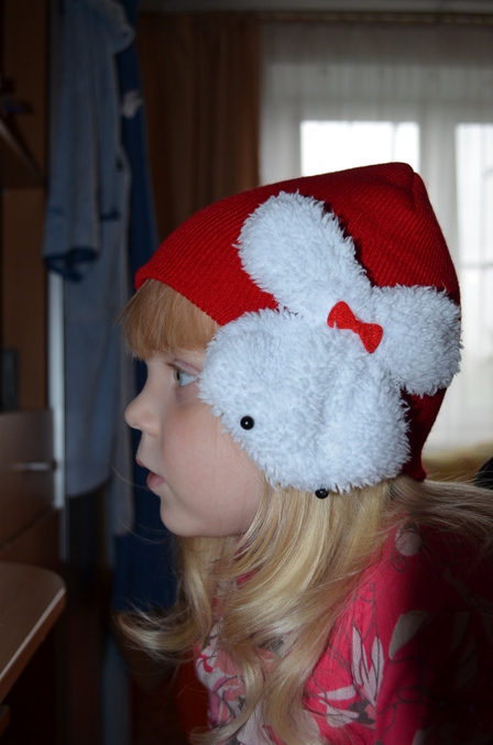 Еще у нас с того же сайта несколько шапок, но размерность у них единая, пишут от 0 до 4 лет, что в реальности не всегда соответствует. Левая шапка дочке (окружность головы 50см) еле налезла, при носке съезжает к затылку (а так суперская), правая от 2 до 5-6 лет в самый раз будет.