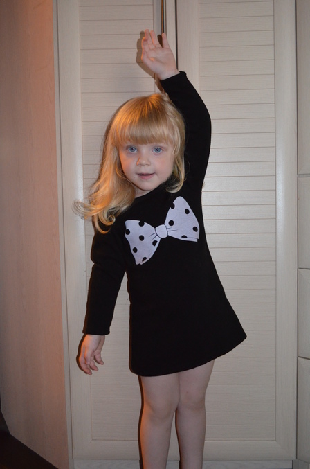 Платье. Оно нам как раз. Это потому что на 100. Теплое, внутри мягкий черный ворс. Само платье коротенькое, но рукава длинные, т.е. именно так оно и должно сидет. Обалденно смотрится с белыми коглотками и черными тефельками или сапожками.