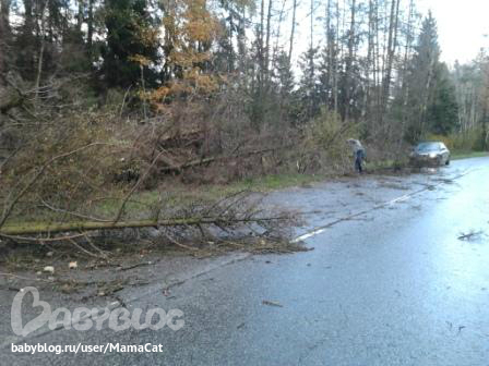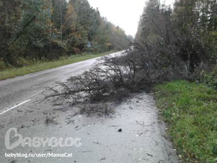 Потом пилили. А бурелом я вам скажу не кислый: 6 деревьев огромных упало и часть (чуть дальше) висит на проводах.