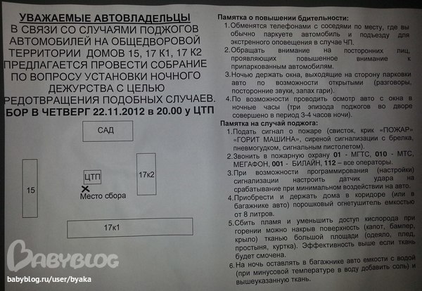 Ань, все разные. Ну, я думаю, уже гораздо больше людей по ночам в окна смотрят. Камеры есть, но я не знаю, смотрел их кто-то или не смотрел. Когда горели машины были же МЧС и Полиция. Думаю, люди, у которых машины сгорели, это должны знать, смотрели камеры или нет. Вот, действительно, все машины разных владельцев и, если бы это была МЕСТЬ, то это одно, а .лять, жечь машины просто, чтобы по телеку про тебя сказали, это же надо быть дебилом полнейшим. Цель, на самом деле, должна же какая-то быть!!!