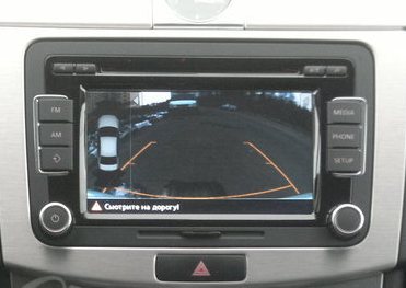 вот что показывает наша камера на магнитолке: рыжим это траектория движения, а рядом еще вся машинка нарисована-это как раз данные с парктроников, там будут показаны препятствия с расстоянием до них