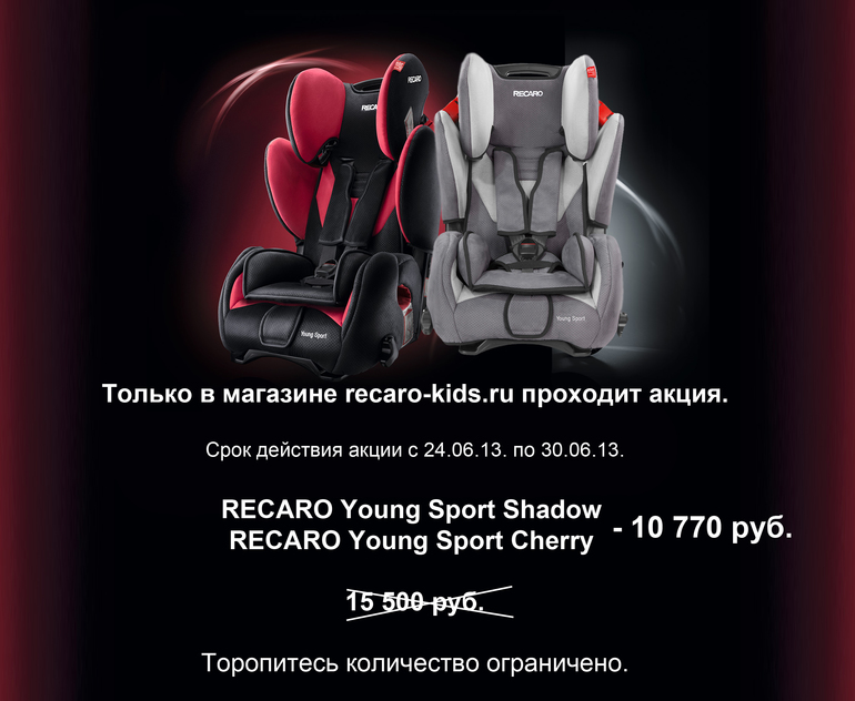 Кресла RECARO Yong Sport Shadow и Young Sport Cherry всего за 10770 рублей ! Только на recaro-kids.ru