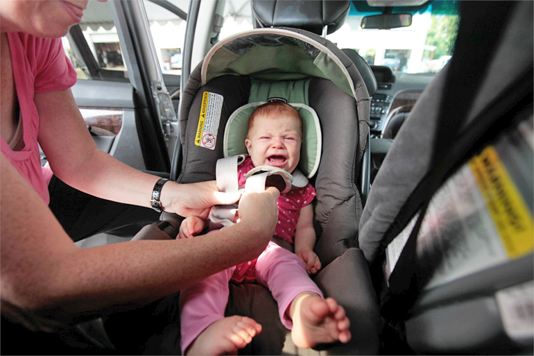 Если, вопреки ожиданиям, против путешествия в автокресле восстает малыш грудного возраста, то первое, что нужно сделать, - это убедиться, что ребенку не жарко (это очень частая причина недовольства) и что ему комфортно в кресле (не жмут ремни, не мешают под спинкой складки одежды, не скомкан под шейкой капюшон).