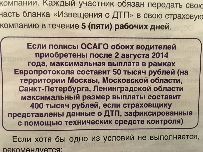 Смысл поста в том, как увеличить размер максимальной выплаты с европротоколом до 400тр