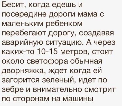 Да-да, а когда ты еле-еле успеваешь оттормозиться - смотрит на тебя как на гавно, мол: "Да вы не офиигелии, я же с ребееенкоом")