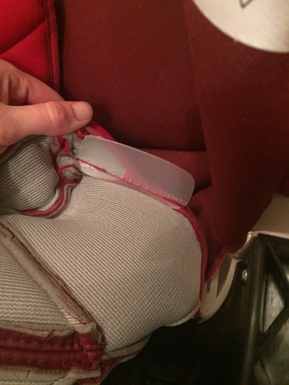 У Kiwy sf012 обивка снимается достаточно легко! Швы с обратной стороны аккуратные, нитки почти не торчат. Вшиты пластиковые элементы - думаю, что это для лучшей фиксации на каркасе автокресла.