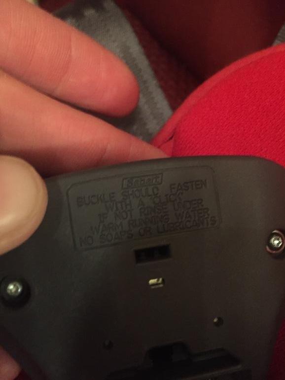На обратной стороне пряжки информация: "пряжка должна крепиться щелчком, если не промывать под горячей проточной водой без мыла или смазочных материалов".