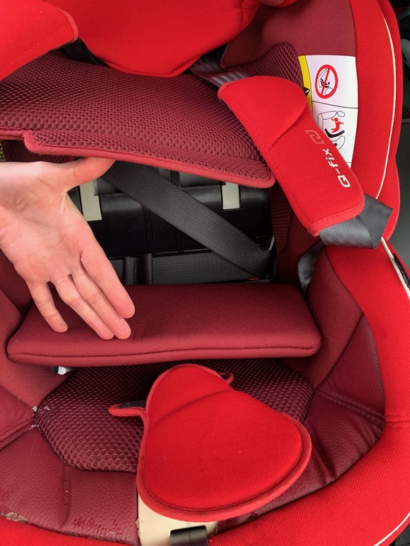 Мы попробовали сразу группу 2. Для этого я спрятала пятиточечные ремни безопасности и пряжку автокресла в специальные отсеки под обивкой, а дочь пристегнула штатным ремнем безопасности автомобиля.