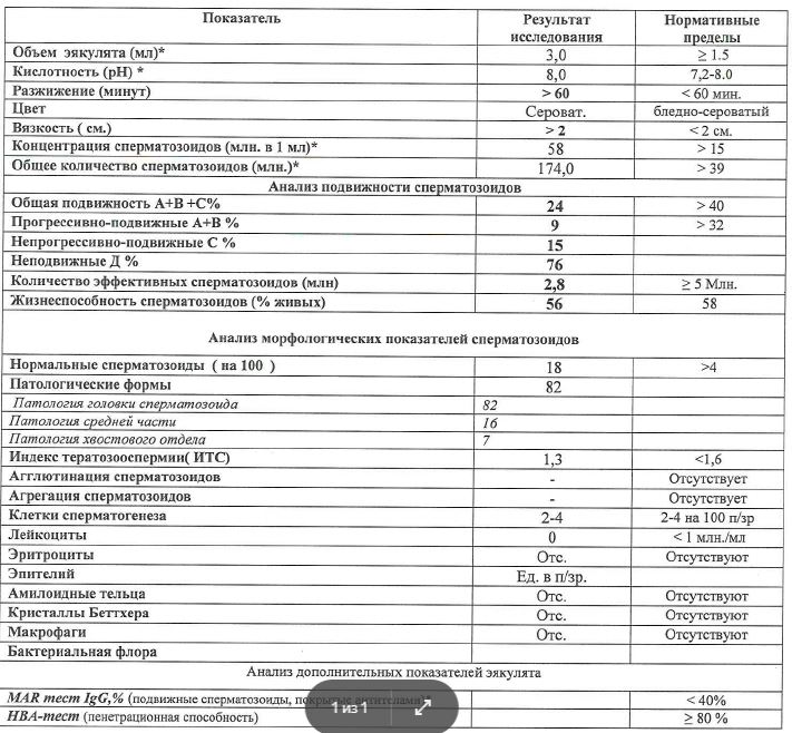 Вот полная Спермограмма. Жизнеспособность у спермы нормальная.