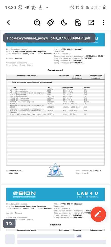 Беременность будете вынашивать на клексане из-за гомозиготы в PAI и начиная с этапа планирования нужно принимать метилфолат вместо обычной фолиевой кислоты. Сейчас нужно сдать анализ на гомоцистеин, если ещё не сдавали. Если высокий - понижать метиллированными формами витаминов б.